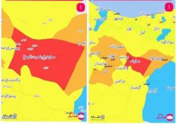 شهرستان‌‌ فیروزکوه نیز که روزهای گذشته قرمز رنگ شده بود، در آپدیت جدید نرم‌افزار ماسک همچنان در وضعیت نارنجی قرار دارد.