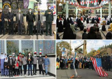 آحاد مردم، دانشآموزان و مسئولان شهری با شعارهای «مرگ بر آمریکا» و «هیهات من الذله» و «مرگ بر اسرائیل» انزجار خود را از جنایات آمریکا علیه ملت ایران ابراز داشتند.